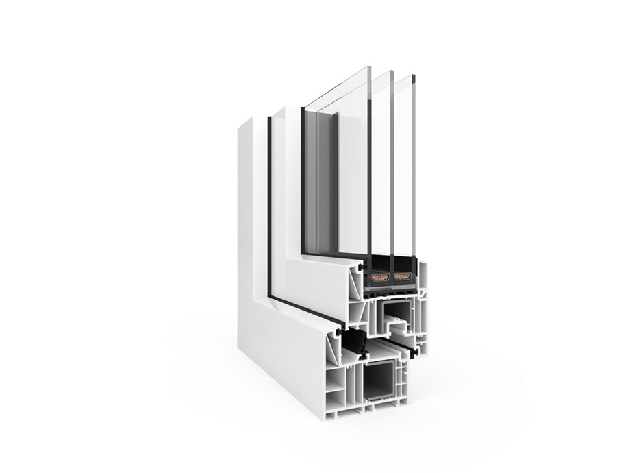 Inovatívna technológia a najlepšie tepelnoizolačné parametre – charakteristické vlastnosti energeticky úsporných stavieb a systému BluEvolution 82. Pri voľbe tohto systému je tiež možnosť výberu výrobkov s renovačným rámom.