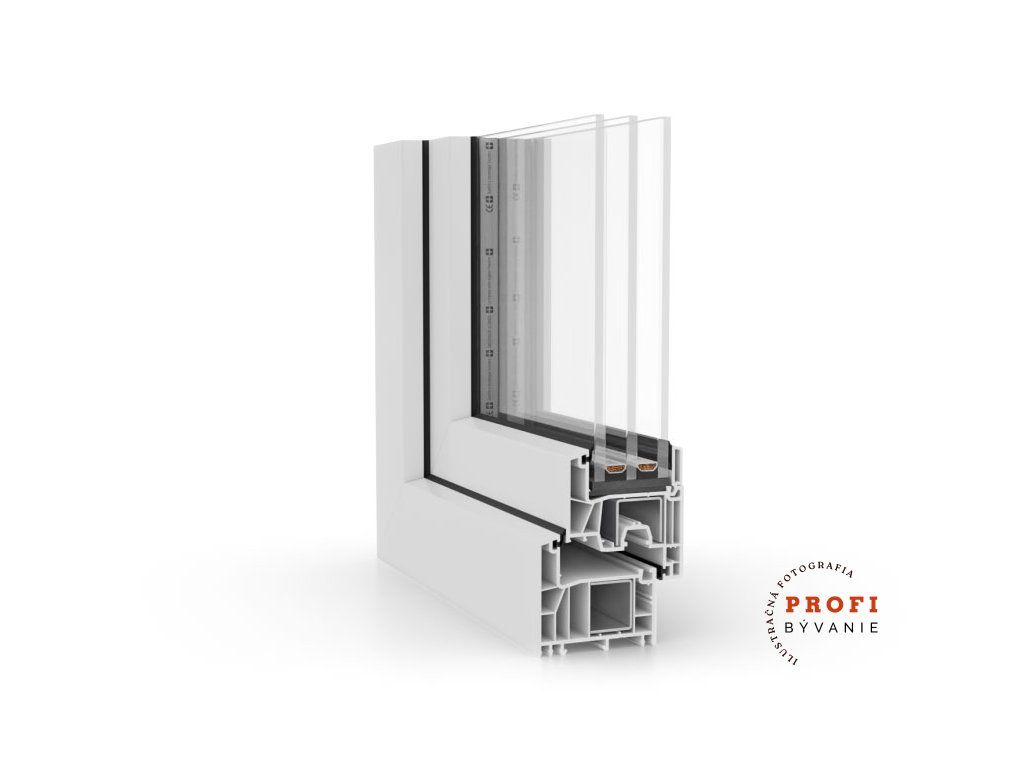 Tvarovú stálosť a pevnosť plastového okna zabezpečuje oceľová výstuha s hrúbkou 1,5 mm v ráme aj v krídle.