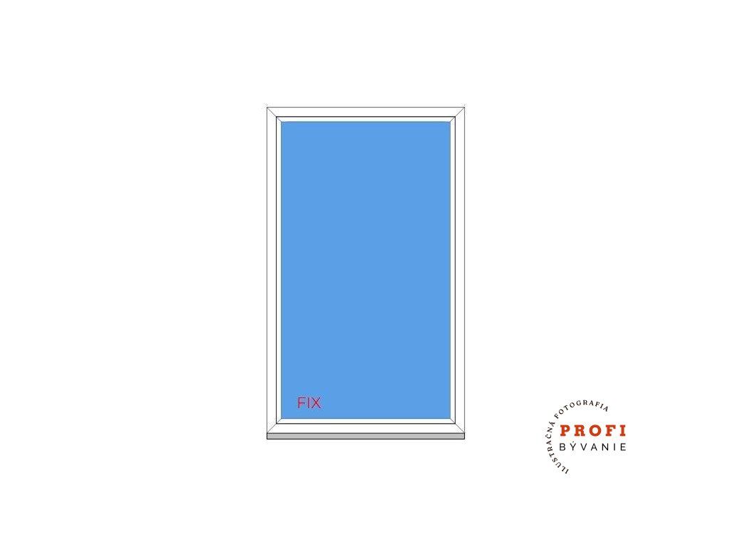 Fixné biele plastové okno s rozmerom šírka 770 mm x výška 950 mm neotváravé.