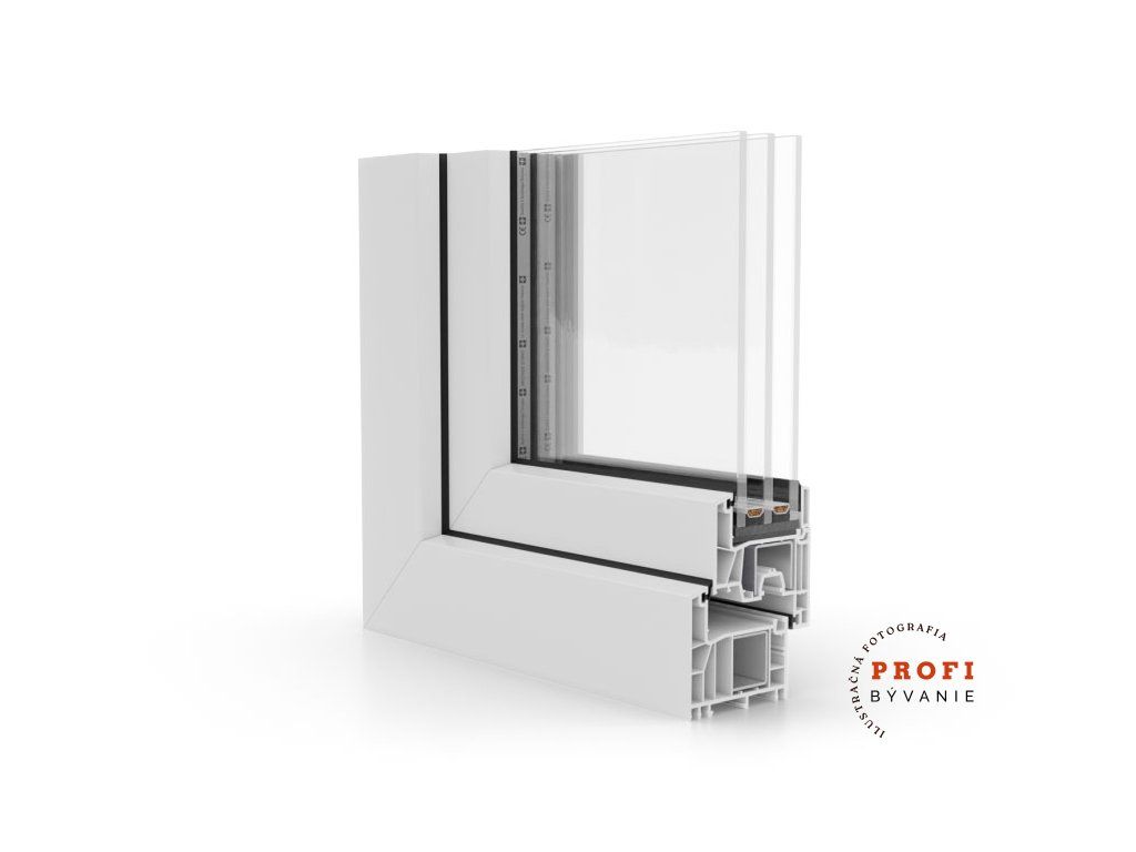 Tvarovú stálosť a pevnosť plastového okna zabezpečuje oceľová výstuha s hrúbkou 1,5 mm v ráme aj v krídle.