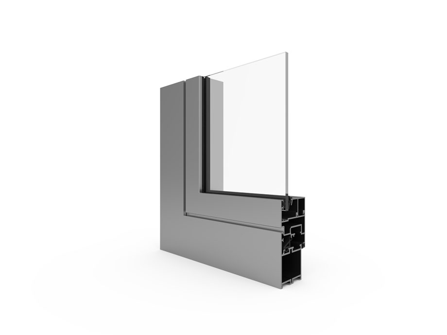 Profil ALUPROF. Stavebná hĺbka rámu 45 mm a krídla 45 mm (dvere), 54mm (okno). Kovanie SIEGENIA TITAN AF. V štandarde 1-sklo 6mm. Možnosť zasklenia do šírky 25 mm (pevné okno) a 34 mm (otváravé okno). Lakovanie v celej palete farieb RAL K7.