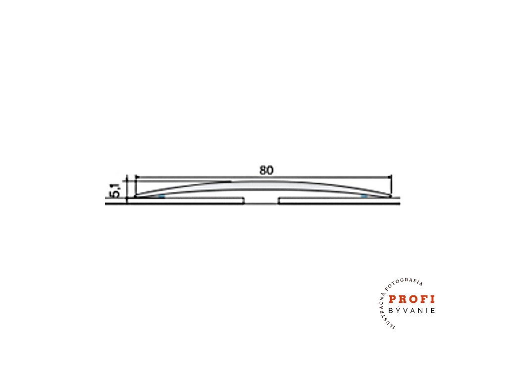 Hliníková široká samolepiaca prechodová lišta. Môže byť v prevedení kov alebo drevo dekor. Šírka 80 MM a výška 5,1 MM