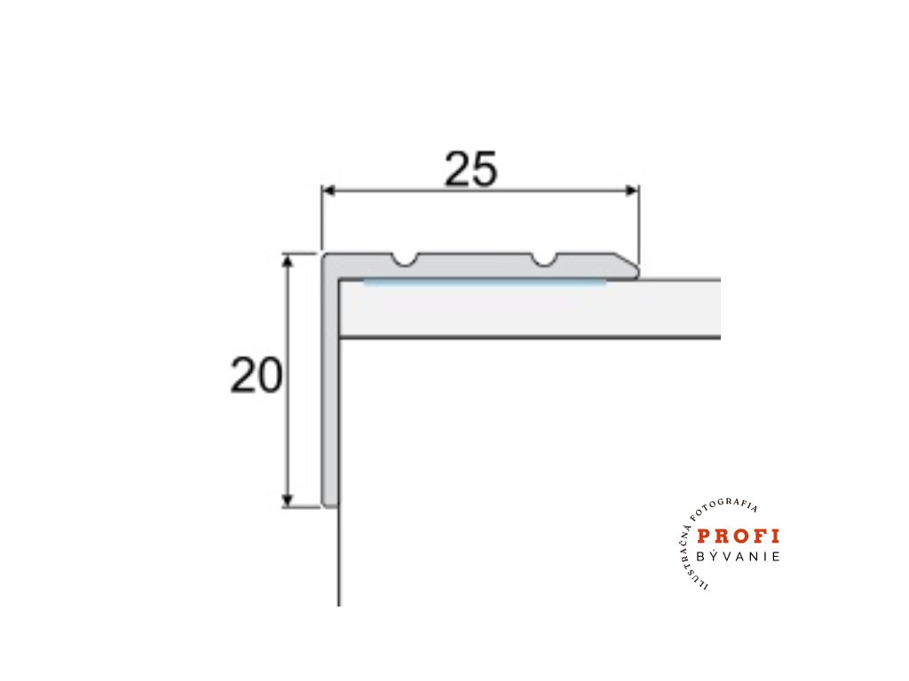 Hliníková schodová lišta samolepiaca. Šírka 25 MM a výška 20 MM.