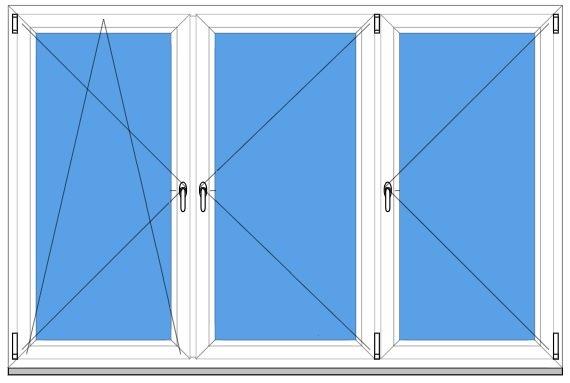 Ľavé krídlo je otváravo-sklopné, stredné krídlo je otváravé a pravé krídlo je otváravé. Po otvorení každého krídel zostáva v strede okna pevný stĺpik!
