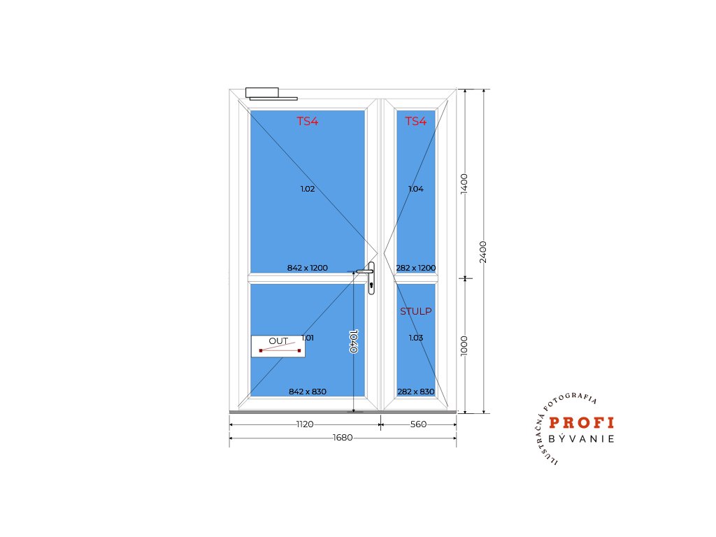Vchodové dvere plastové dvojkrídlové 1680x2400