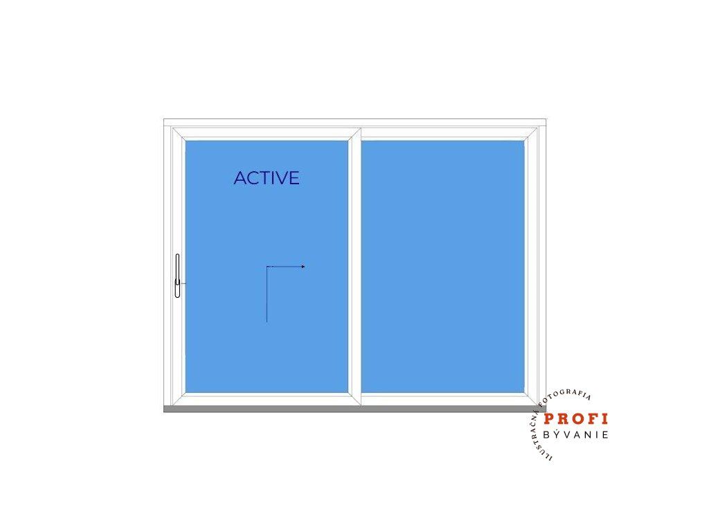 Ľavé krídlo je posuvné, pravé krídlo je fixné-neotváravé.